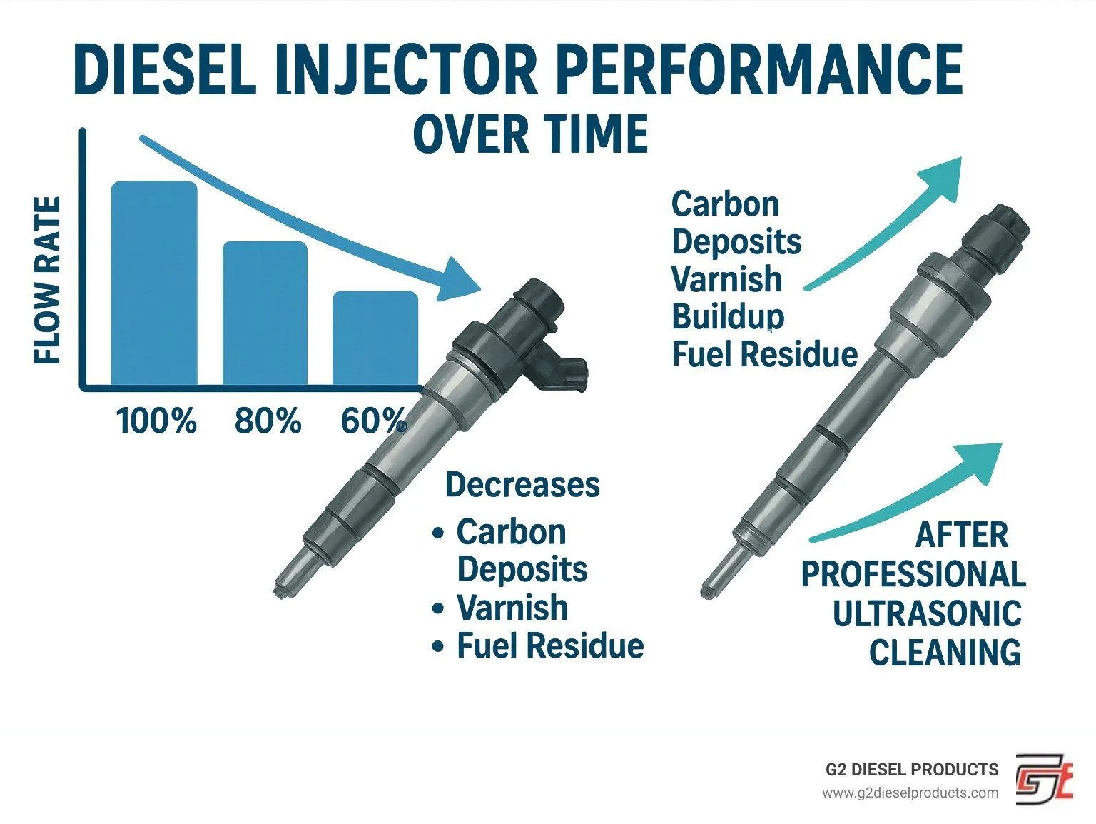 Professional diesel fuel injector cleaning service delivers impressive results that make it one of the smartest maintenance investments you can make. When you consider that cleaning can restore up to 95% of your injectors' original performance at a fraction of replacement cost, the value becomes crystal clear.