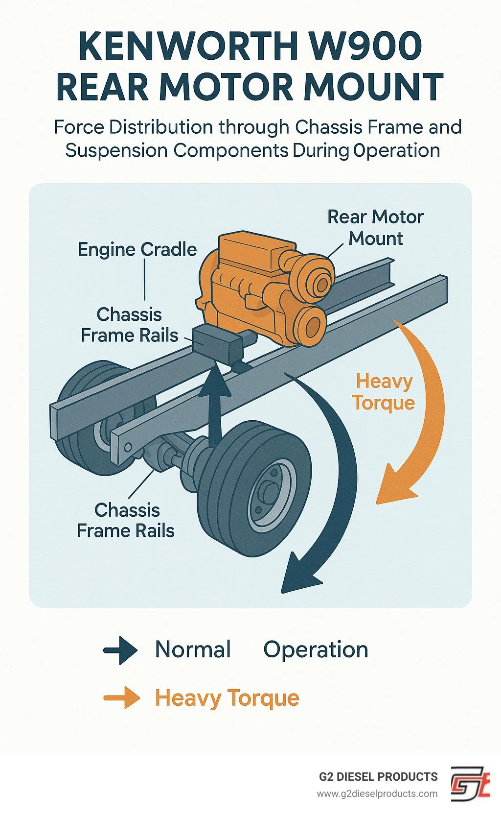 Kenworth W900 rear motor mounts are the link between raw engine power and a comfortable, reliable ride. Every time the engine fires, torque wants to twist the block, shake the frame and throw driveline angles out of spec. The rear mounts absorb that energy, keeping the engine in place and the cab calm.